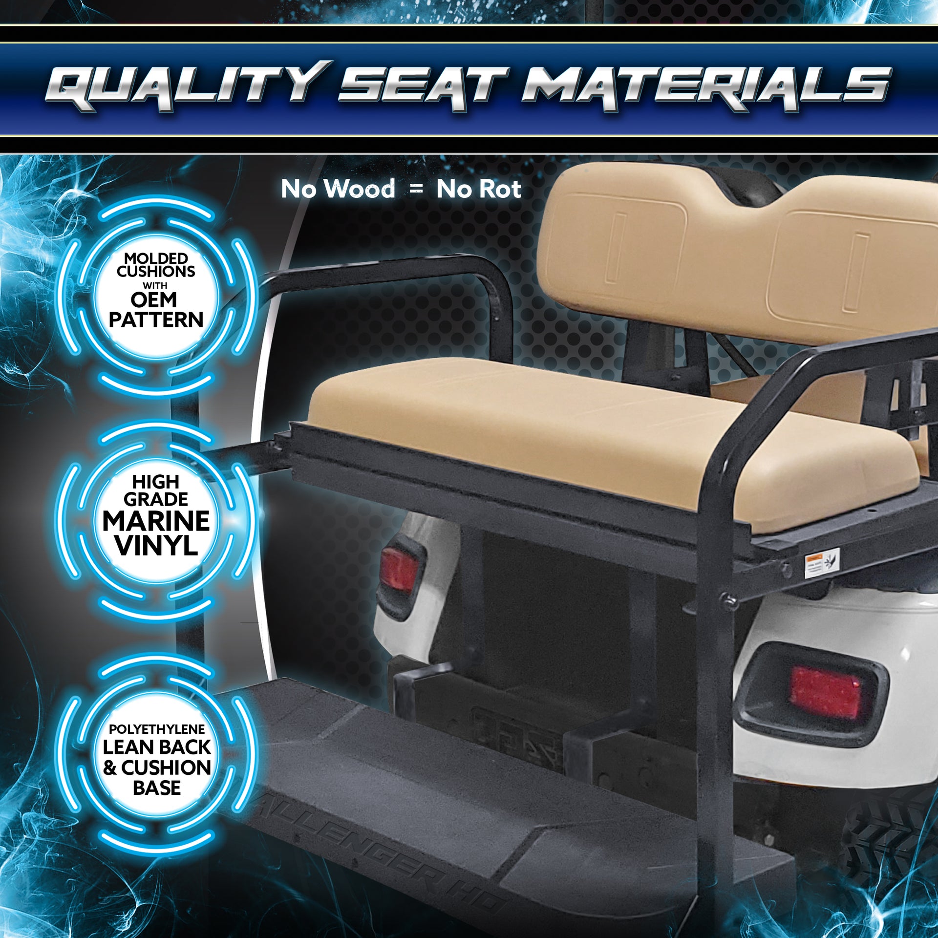 ProFormX Challenger HD Rear Seat - Fits E-Z-GO TXT/Freedom 1994.5-up (Tan Cushions)