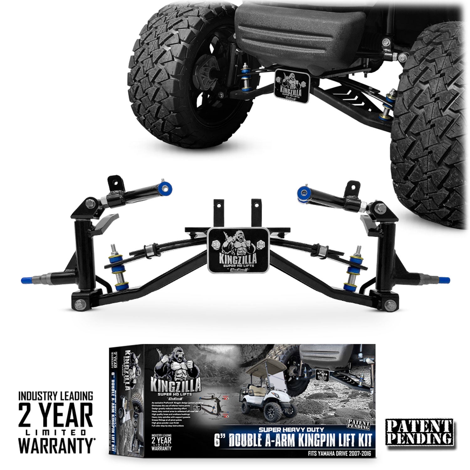 Are you ready to be the apex predator of your neighborhood? Our Kingzilla Super HD 6" Lift Kit will put you and your cart at the top of the food chain! These Kingzilla golf cart lift kits are the best built lift kits on the market for the Yamaha Drive G29 YDR. If you are looking for a high quality, heavy duty lift kit for your Yamaha golf cart, then look no further. Our patented double a-arm kingpin design is the best lift kit you can buy for your Yamaha Drive G29 golf cart. We stand behind our Kingzilla lift kits with an industry leading 2 Year Limited Warranty!